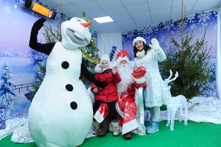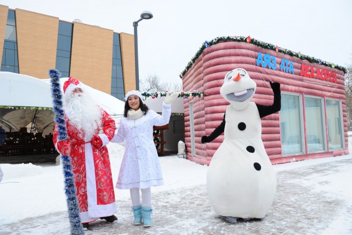 В Центральном парке Астаны распахнула свои двери резиденция Деда Мороза. Всех гостей в специальном домике ожидают Дед Мороз, Снегурочка и снеговик Олаф из мультфильма "Холодное сердце". Сказочные герои также будут встречать гостей парка на центральной аллее и поздравлять с наступающим праздником.