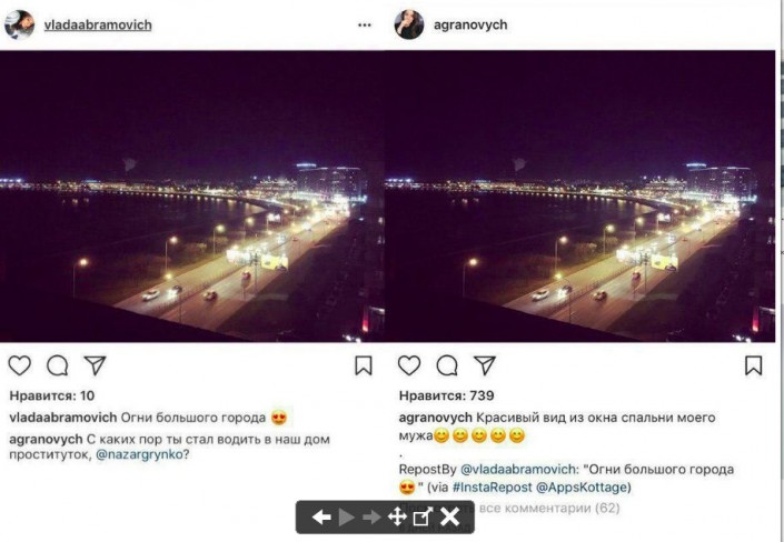 Убедившись, что снимок действительно сделан из их комнаты, девушка спросила супруга в комментариях, давно ли он приводит в их дом проституток. После она сделала репост записи любовницы на своей странице и вступила с ней в переписку.
