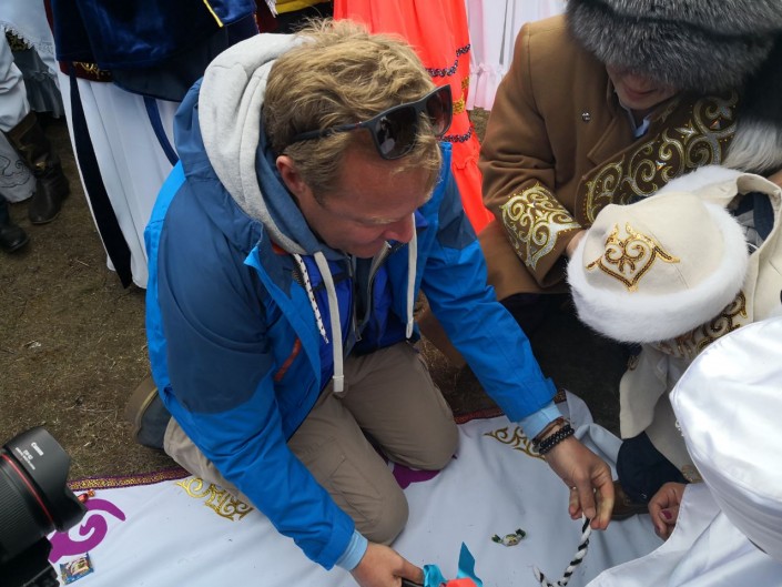 После танцевальной паузы Джон Уоррен принял участие в инсценировке обряда тұсау кесер (обрезания пут).