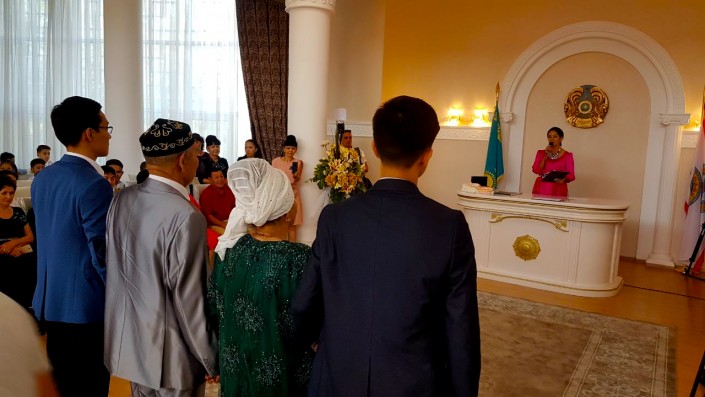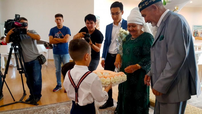 55-летие совместной жизни отпраздновала пара из Алматы. Изумрудную свадьбу 74-летний Келгенбай Жасапбергенов и 72-летняя Нургуль Кадыргулова провели в отреставрированном Дворце бракосочетания южной столицы, передает корреспондент Tengrinews.kz. Отметим, что это первая изумрудная свадьба, проведенная именно во Дворце бракосочетания Алматы. Пять лет назад пара отмечала золотую свадьбу - 50-летие совместной жизни.