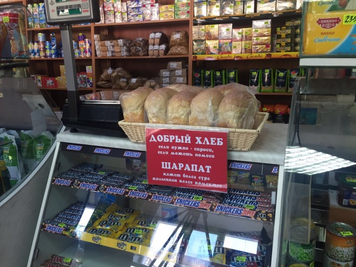 В одном из центральных магазинов города - "Черемушки" - молодые активисты установили корзину. В ней любой покупатель по желанию может оставить булку хлеба, которую потом бесплатно смогут взять малообеспеченные люди.