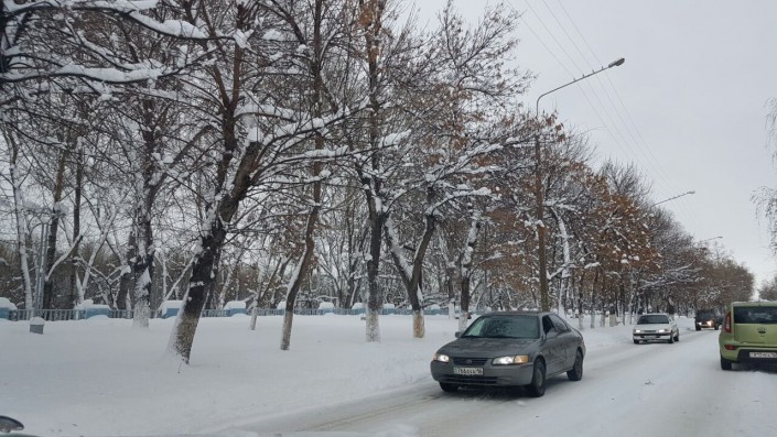 Снег парализовал движение в Усть-Каменогорске Фото Tengrinews.kz