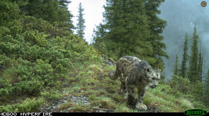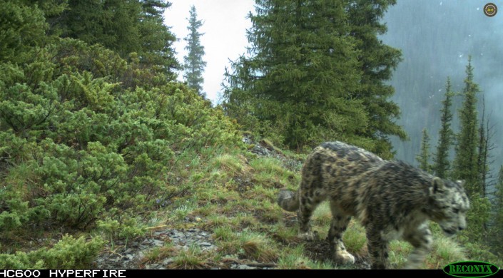Снежных барсов после дождя засняли фотоловушки в Алматинской области
