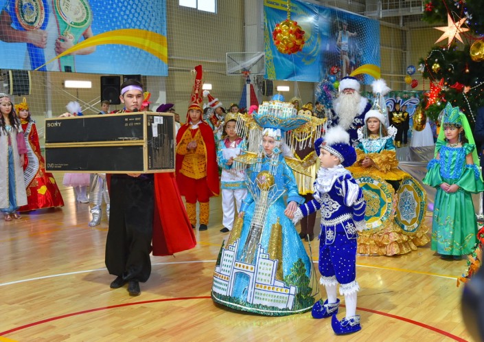 Образ, который называется "Королева независимости", был придуман в Айыртауской школе-интернате для детей-сирот и детей, оставшихся без попечения родителей. Девочка завоевала гран-при на президентской елке.