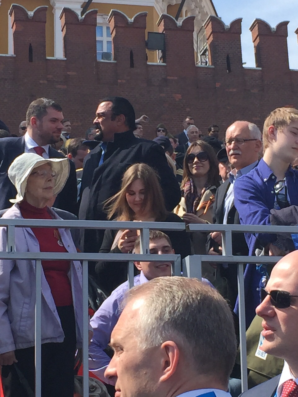 Стивен Сигал находился на трибуне с казахстанскими ветеранами на параде в Москве Стивен Сигал посетил парад Победы в Москве. Фото may9.ru