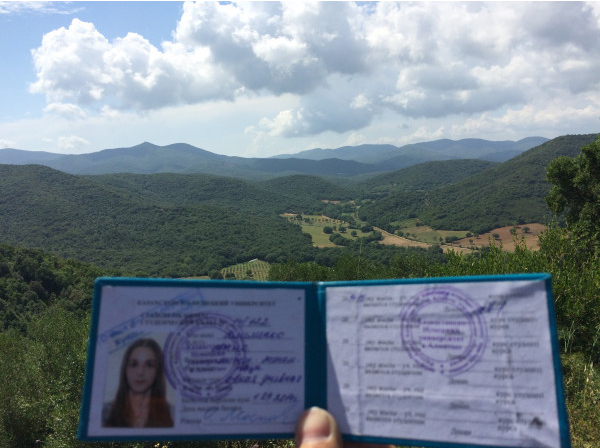 Так документ побывал в миланском аэропорту Малпенза, на озере Изео, в городе Брешиа, в амфитеатре Вероны, "прогулялся" по улицам Монтелупо-Фьорентино, сфотографировался с пизанской башней, а также совершил экскурсию по Риму, "обойдя" такие достопримечательности, как Алтарь отечества, Колизей и посетив Ватикан. Также студенческий билет вывезли в Париж, где блогер сфотографировал документ на фоне Лувра.