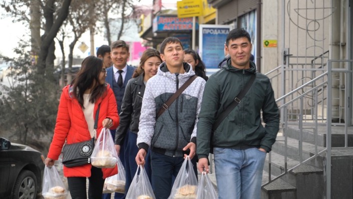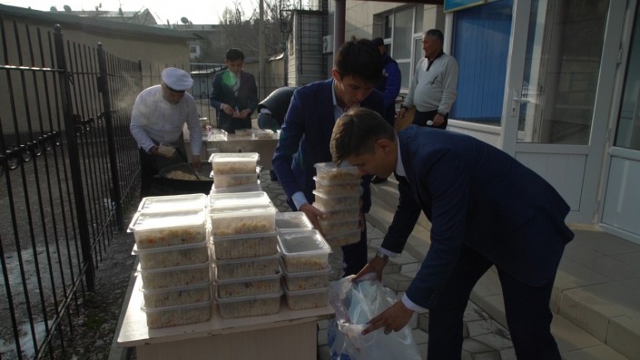 "Активист молодежного крыла Айбар собрал волонтеров и угостил охранников, дворников школ и больниц, бездомных города пловом, баурсаками и горячим чаем. Ребята приготовили 25 килограммов плова и раздали все", - сообщили в пресс-службе.