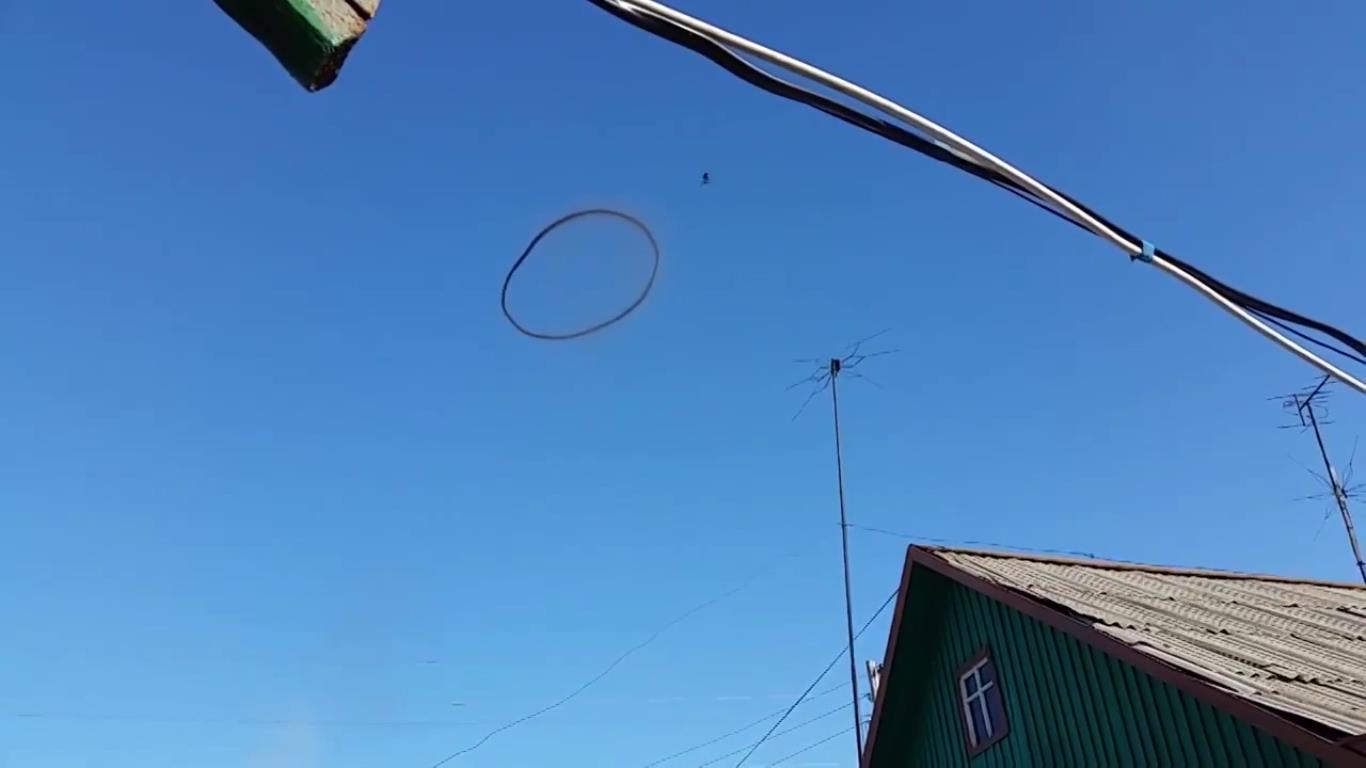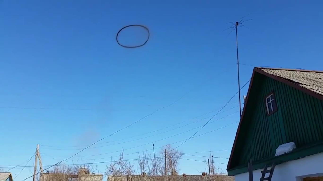 Необычное явление наблюдали 3 апреля жители населенного пункта Шортанды в Акмолинской области. В небе над поселком несколько минут висело загадочное черное кольцо. Житель села Роман Халилов запечатлел его на камеру и опубликовал видео на портале YouTube.