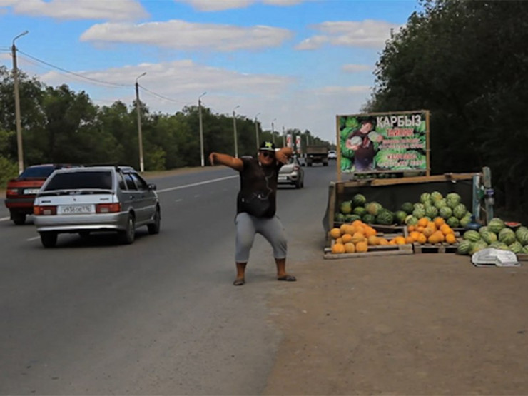 Танцующий продавец арбузов: Хочу поднять людям настроение Кадры из видео uralskweek.kz