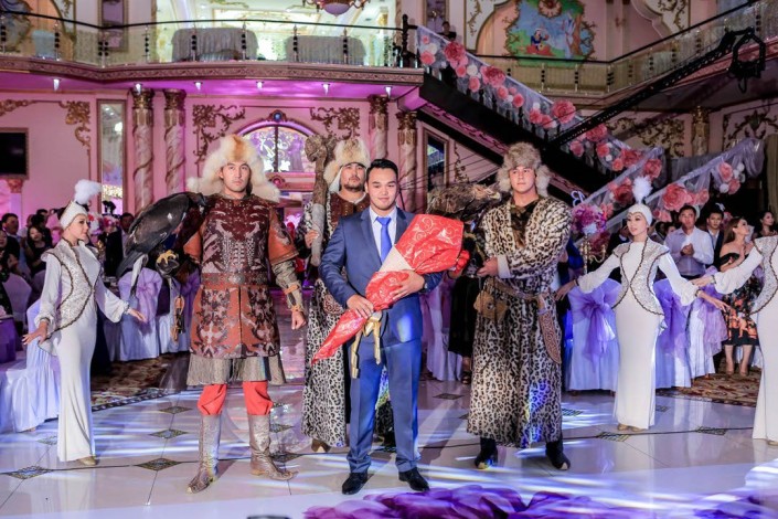 "Әрине, ондай оқиғалар жиі болып тұрады. Өзім ұйымдастырған бір тойда 28 адамнан құралған ішекті аспаптар оркестрі венн музыкасын ойнап тұрды. Одан кейін 15 жұп яғни 30 адам балет биледі. Сонымен 58 адам қалыңдық пен күйеужігітті тойханаға кіргізген болатын. Барлығы 58 адамның сүйемелдеуімен болды", - дейді асаба.
