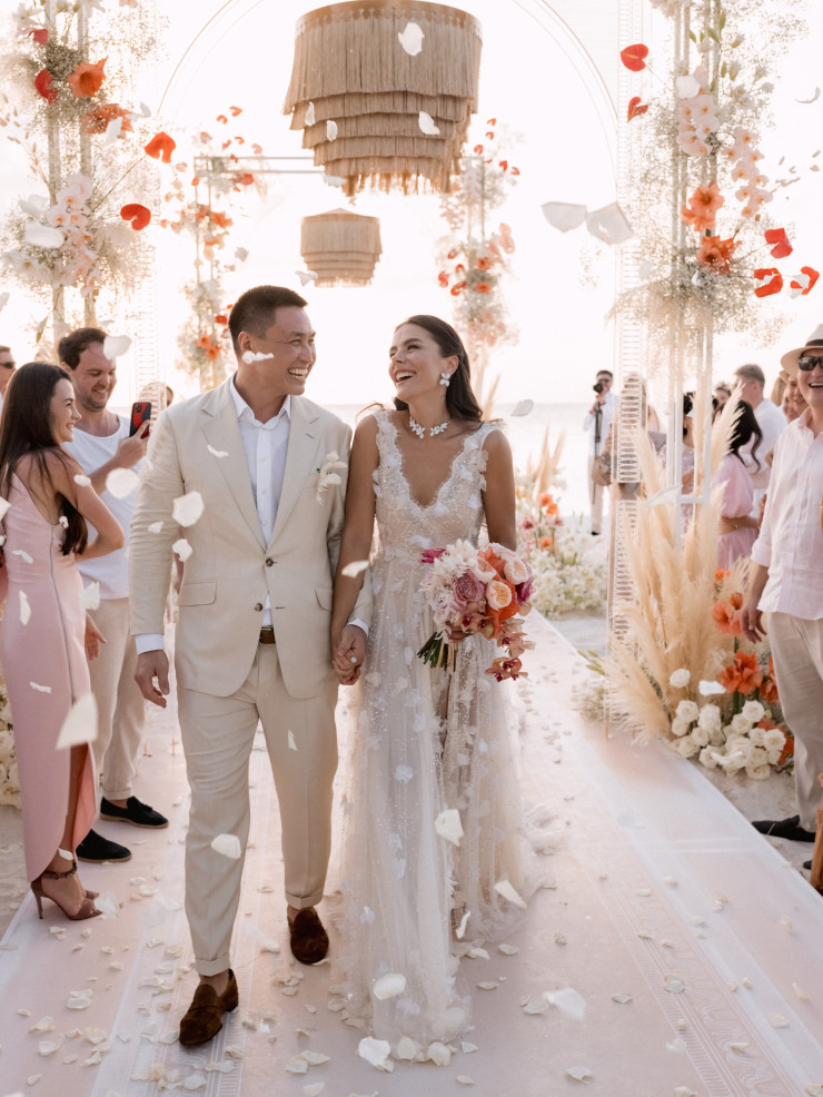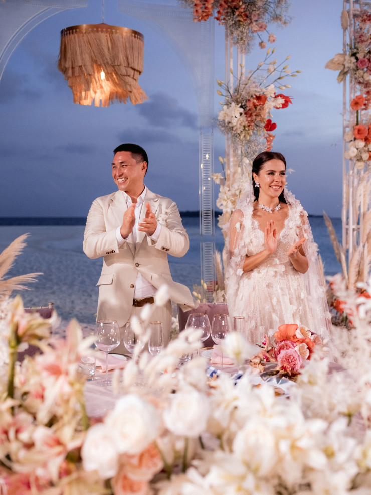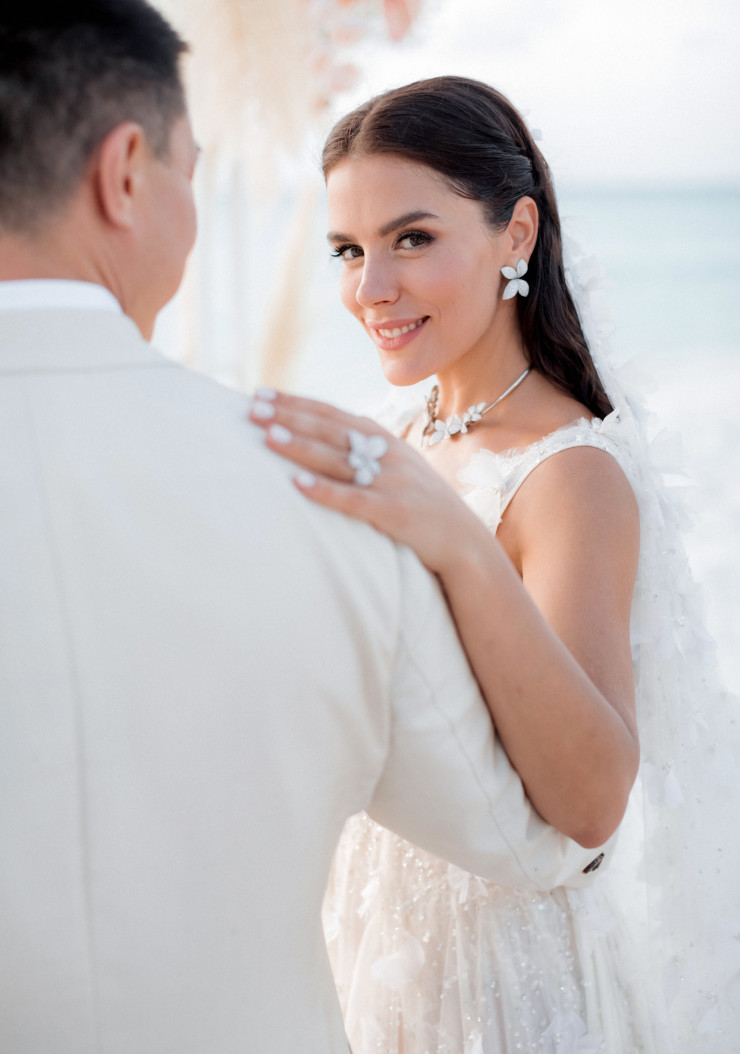 - Один из наших первых совместных отпусков с любимым был как раз на Мальдивах. И мы там оставили часть своих сердец, прямо влюбились в это место. Мы оба хотели, чтобы свадьба была летней, солнечной и на островах. Рассматривали разные варианты, летали в Доминикану. Но когда вернулись на Мальдивы, поняли, что это именно то место, где хочется устроить самую важную в жизни церемонию. И не пожалели: все получилось очень красиво, гармонично и так, как мы с Алмазом мечтали.