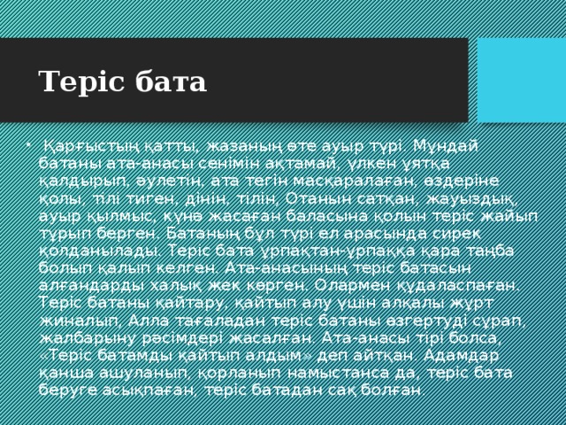 Теріс бата деген не және оны қазақ қандай жағдайда айтқан?