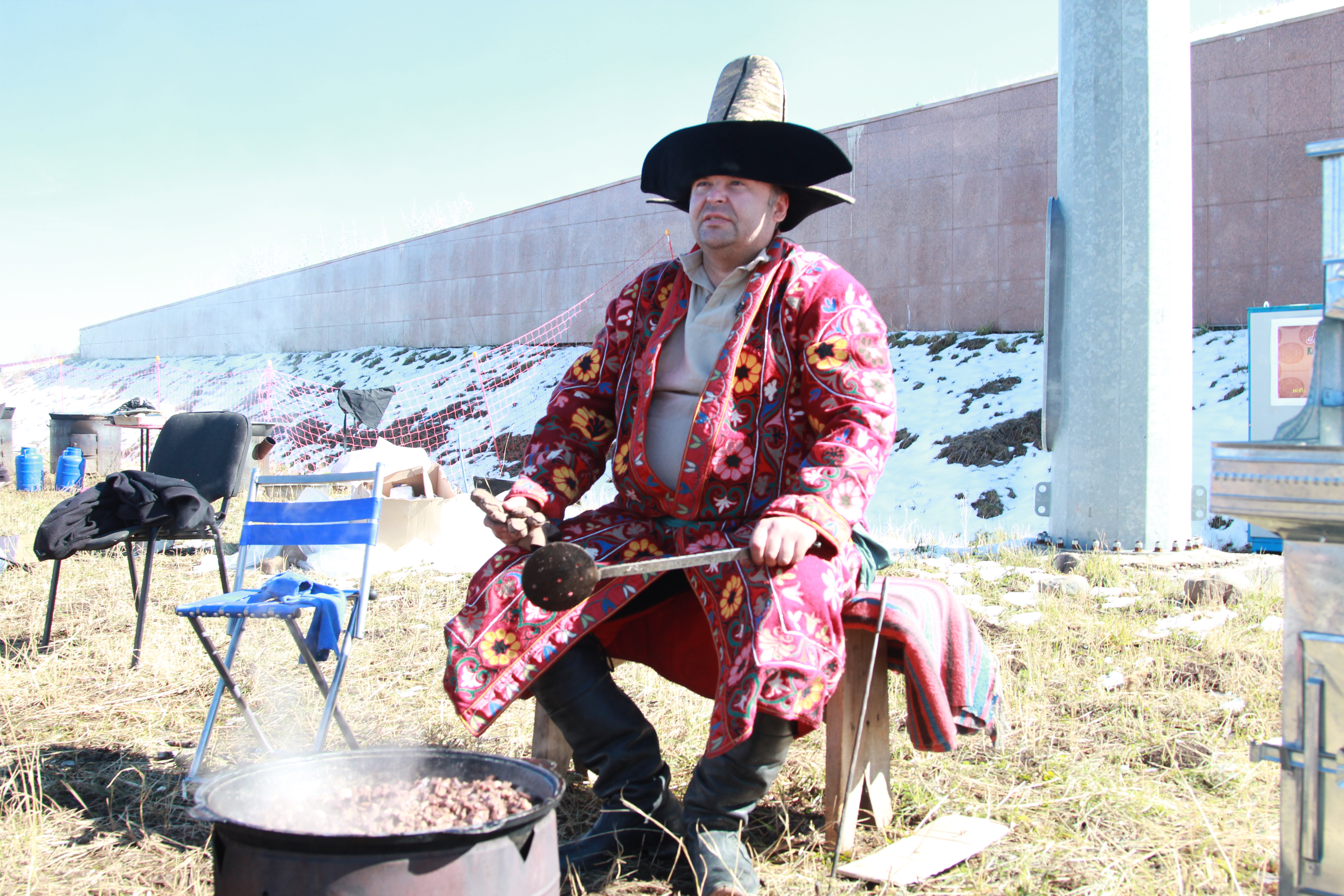 К полудню все гости фестиваля национальной кухни сидели за своими столами и наслаждались горячей и аппетитной едой. Им было предложено попробовать более 30 блюд от 25 разных мастеров. Гостям подали несколько видов бешбармака, куырдака, плова и самсы. По словам повара Игоря Прыткова, приготовившего свой фирменный куырдак, сейчас это блюдо редко где готовят правильно, соблюдая многовековые пропорции и рецепты. "Это блюдо я готовлю уже много лет. Я профессиональный повар. Куырдак я делаю на курдюке, в разных пропорциях добавляю легкое, сердце, печень. Это ханское блюдо, которое готовилось только по большим праздникам и для почетных гостей. (...) В древние времена говорили, что если ты хочешь сделать человеку приятное, то не нужно говорить ему комплиментов, ты лучше накорми его", - рассказал Прытков.