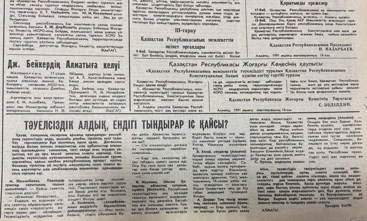 Қазақ халқының арманы орындалып, республика тәуелсіздігін алғаннан кейін "Егеменді Қазақстан" басылымы қарапайым тұрғындардың ертеңгі күні мен болашақ тірлігіне көз жүгірту мақсатында қала әуежайы мен базарға шығып, халықпен тілдесіп қайтқан екен.