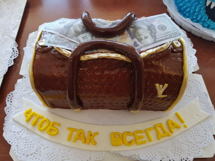 В Алматы презентовали торт, выполненный в виде сумочки от Louis Vuitton, передает корреспондент Tengrinews.kz.