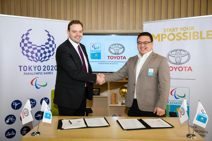 Сообщается, что в октябре 2017 года Национальный паралимпийский комитет и "Тойота Мотор Казахстан" подписали соглашение о сотрудничестве, в рамках которого компания не только обновляет автопарк комитета, но и намерена поддерживать сборную на Паралимпиаде-2020 в Токио, а также на других спортивных соревнованиях международного уровня вплоть до 2024 года. Организации совместно работают над укреплением спортивного духа казахстанцев и продвижением паралимпийских ценностей.