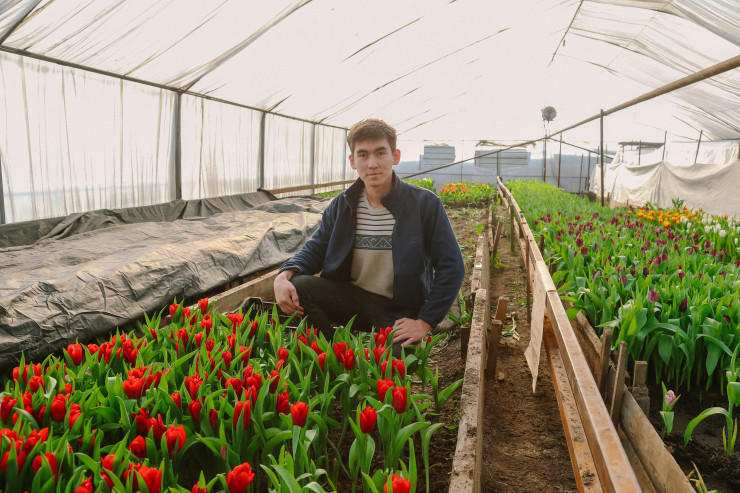 "Но все труды того стоят. Просто представьте: зима, вокруг сугробы, возможно метели. А ты входишь в огромную теплицу, усеянную тысячами красных, розовых, желтых, оранжевых, белых, фиолетовых бутонов. Голову немного кружит легкий весенний аромат. Разве это не здорово?" - делится Абылхайыр.