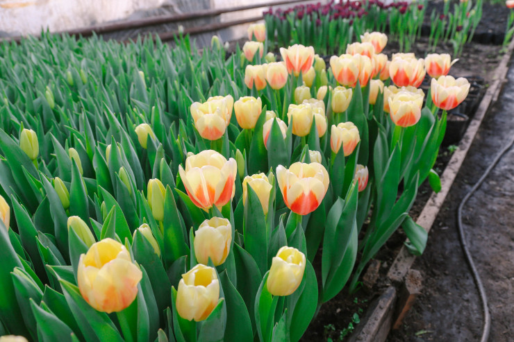 Следующие три месяца занимает первый период так называемой "выгонки" - ускоренного выращивания тюльпанов. В начале января в парниках начинают топить печи и поливать растения.