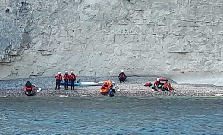 Парню удалось реализовать свой план. Он приземлился в нескольких метрах от берега - там, где в это время как раз плавали каякеры. Лодочники помогли туристу выбраться на каменистый берег у подножия мелового утеса и оказали первую помощь.