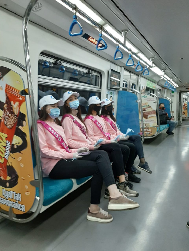 Участницы "Мисс Алматы - 2020" бесплатно раздавали маски на улицах