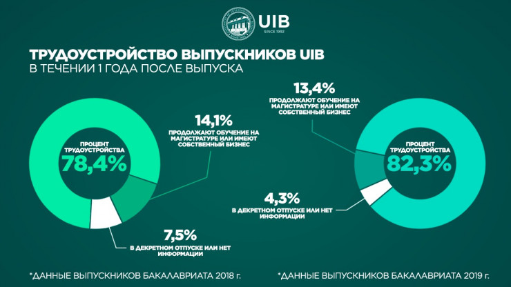 "Качество образования в университетах является важным аспектом в трудоустройстве выпускников, сейчас важными критериями при принятии решений о приеме кандидата на работу является не только hard skills, но и soft skills", – пояснила выпускница UIB, Волкова Алина, 21 год. - Спасибо большое UIB за то, что дал мне возможность всесторонне развиваться, и благодаря приобретенным знаниям и навыкам я уже работаю по своей профессии!"