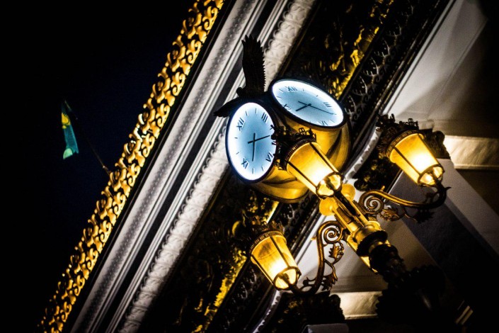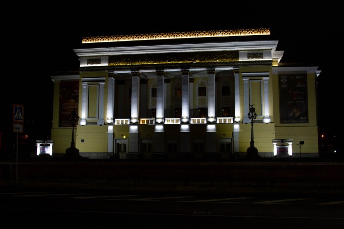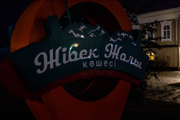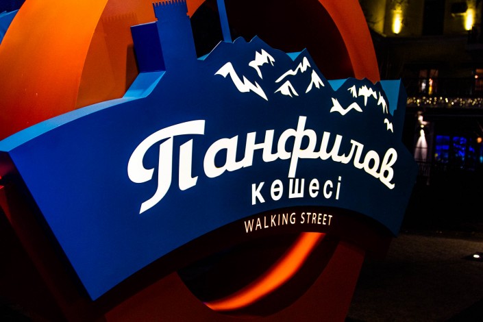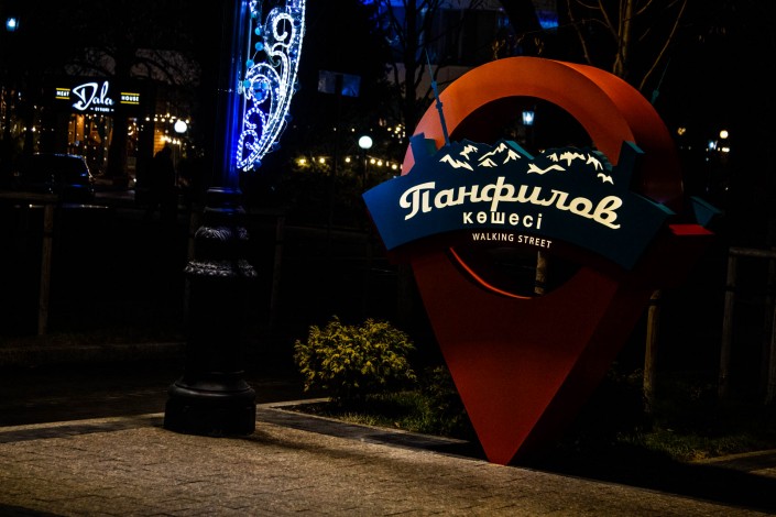 На пересечении улицы Кабанбай батыра и улицы Панфилова расположен Государственный академический театр оперы и балета имени Абая. Здание театра подсвечивают огни. Гуляющим по Панфилова открывается вид на театр.
