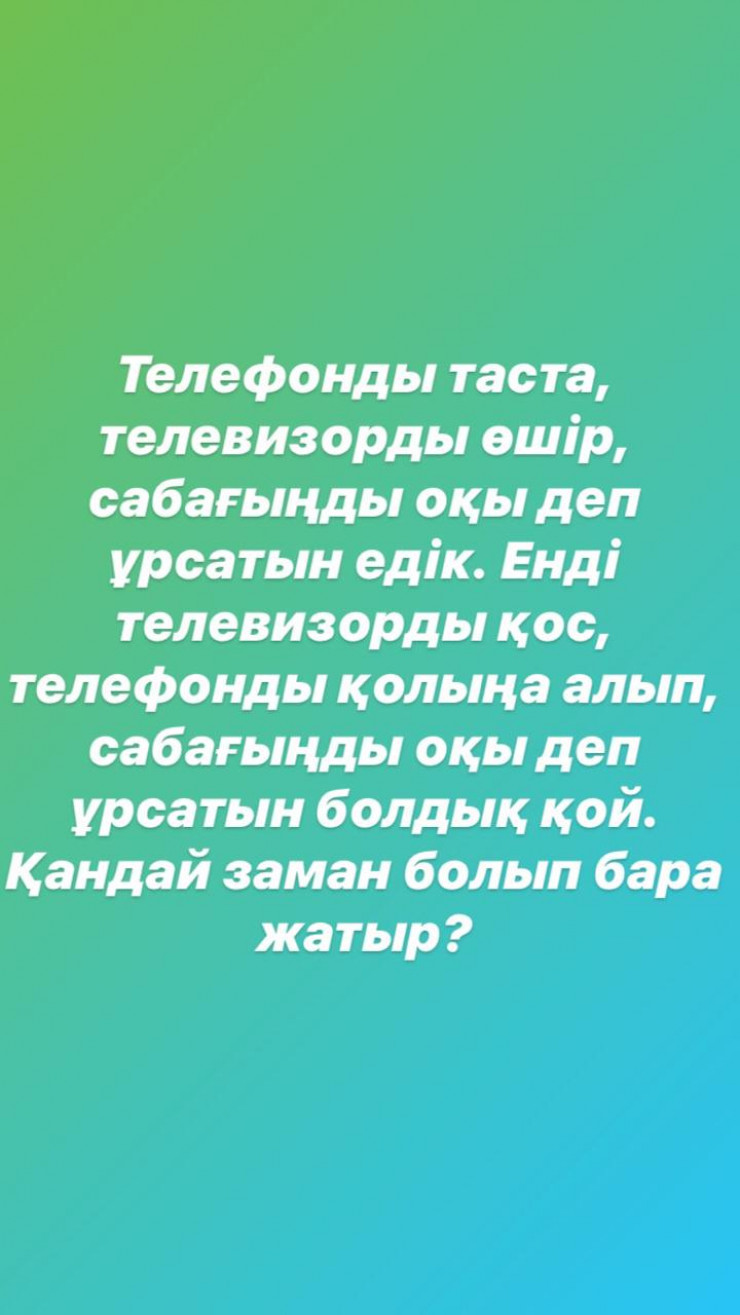 "Оқушы: Апайды зарлатпай жауап беріңдерші группаға. 21:30 болды, әлі жазып жатыр ғой.
