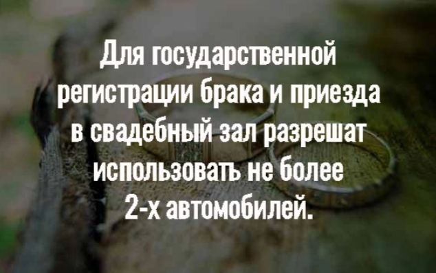 Кроме того, планируется ограничить число автомобилей в свадебном кортеже до двух машин и количество артистов, выступающих на торжестве. По новым правилам приглашать на свадьбу можно будет только одного артиста или группу.