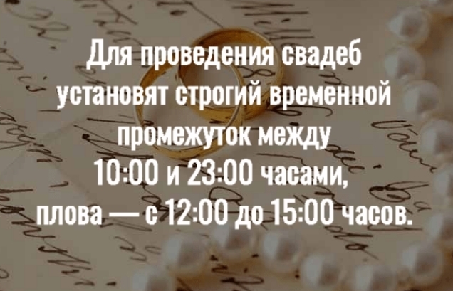 Согласно документу предлагается ввести ряд ограничений при проведении свадебных торжеств. Одно из главных - ограничение числа приглашенных на свадьбу - до 150 человек, на свадебный и поминальный плов - до 200 человек. Также рекомендовано сдвинуть время плова - давать плов разрешается с 12.00 до 15.00.