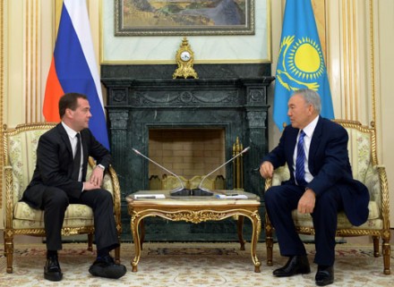 В такой же "высокой" обуви журналисты несколько раз заметили и председателя правительства РФ Дмитрия Медведева. По данным портала Podrobnosti.ua он приехал на встречу с Нурсултаном Назарбаевым в туфлях на 5-сантиметровой платформе. Отмечается также, что рост у Назарбаева 170 сантиметров, а у Медведева - 163 сантиметра.