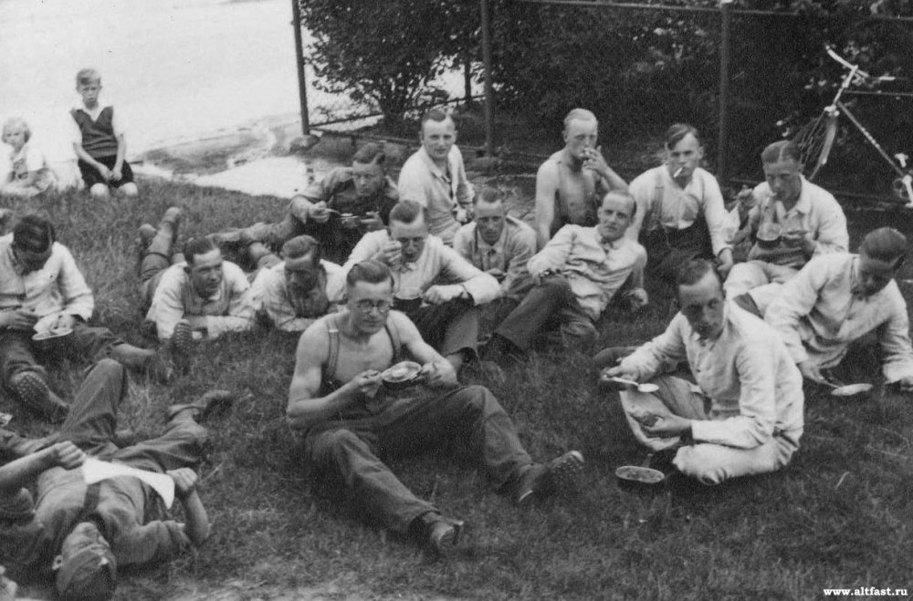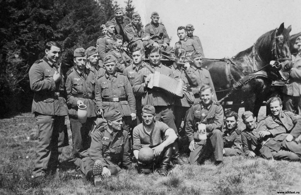 Немецкие солдаты в свободное время на привале.