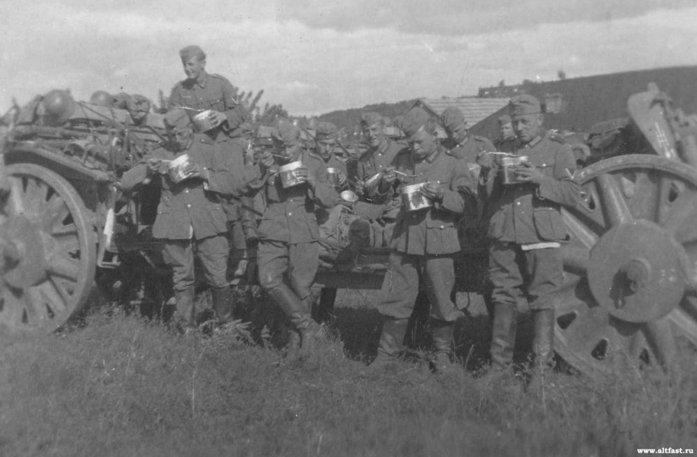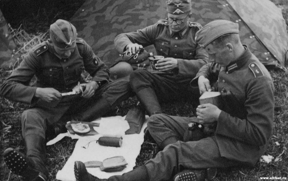 Немецкие солдаты во время приема пищи.