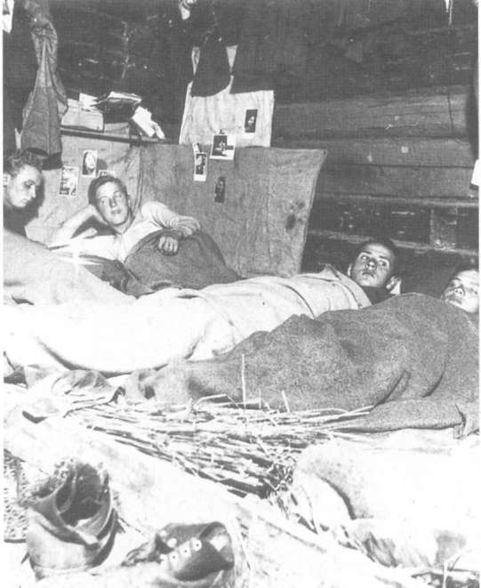 Из воспоминания бойца Ленинградского фронта 1025-й отдельной минометной роты Ивана Мельникова: "В апреле 1942 года приехали на место, сразу зарылись в землю, построили хороший блиндаж. Под землю ведет отверстие, потом ступеньки земляные, на дверях плащ-палатка, внутри проход, а по бокам нары, покрытые соломой. Немцы повсеместно пользовались шерстяными одеялами, советские же солдаты обходились шинелью, она была с нами практически все время - зимой на плечах, летом в скатке. В ходе наступления, когда наши войска выбивали врага из укреплений, они имели возможность познакомиться с его бытовыми условиями. Блиндажи у немцев были добротные, стенки выкладывали березой, на нары стелили солому, внутри всегда было тепло. Но теплые немецкие укрепления просто кишели паразитами. Все солдаты ощущали наличие этих ужасных паразитов. Бывало, идет солдат по лесу, видит спиленный поровнее пень, снимет шинель и давай о пень колотить, так шинель вся и покраснеет. До того их было много". Распространению вшивости способствовало и то, что бойцы часто пользовались чужой одеждой и постельными принадлежностями, в том числе принадлежащими местному населению.