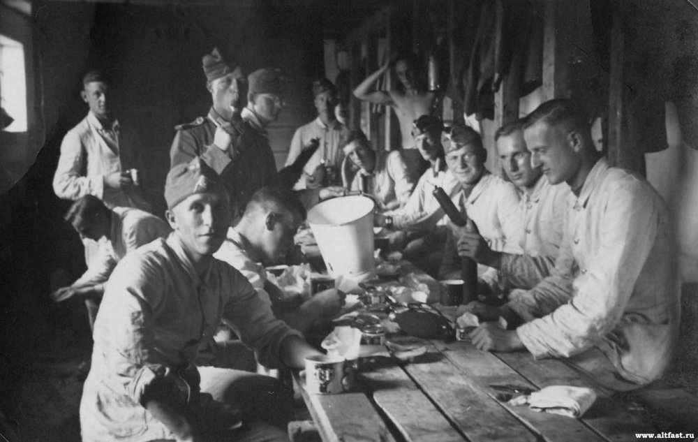 Немецкие солдаты на ужине.