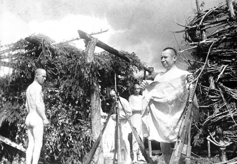 Стрижка и бритье бойцов немецкой армии.