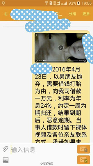 Другая студентка отправила интимное видео в обмен на кредит в 10 тысяч юаней. Скриншот сообщения с угрозами, отправленного ей кредитором, широко разошелся в Сети и по китайским СМИ. Отмечается, что ситуацию дополнительно усугубило то, что девушка якобы брала кредит на аборт после нежелательной беременности.