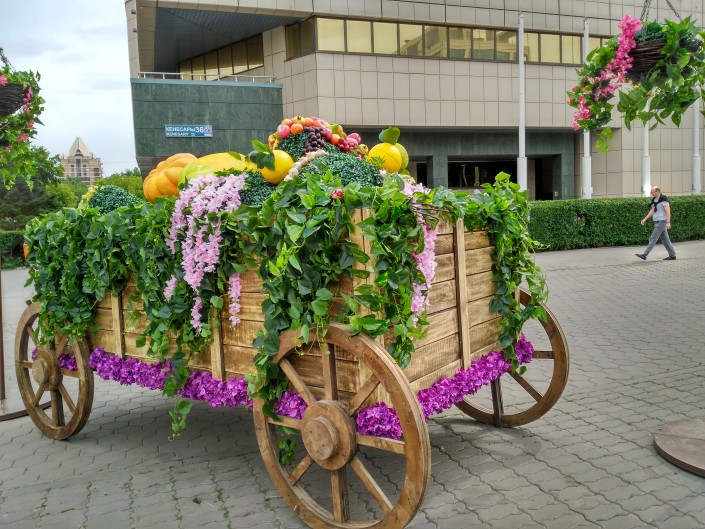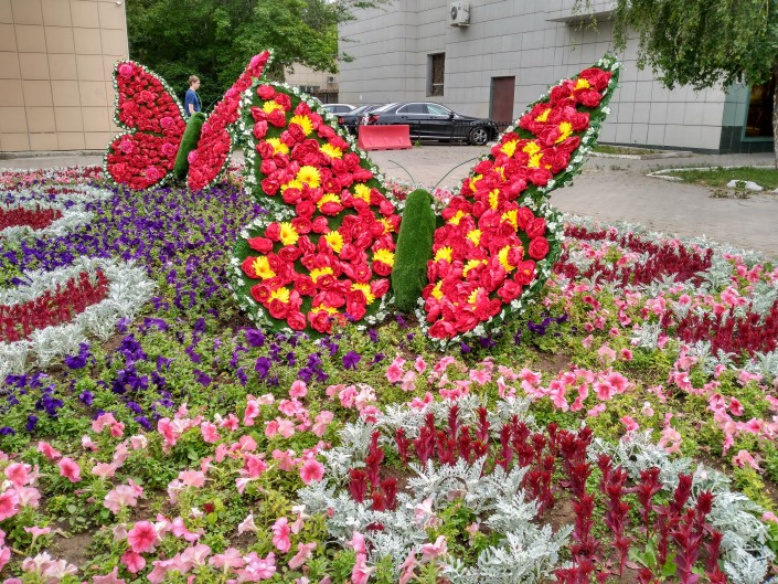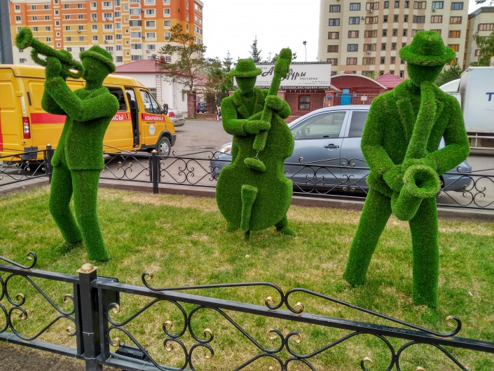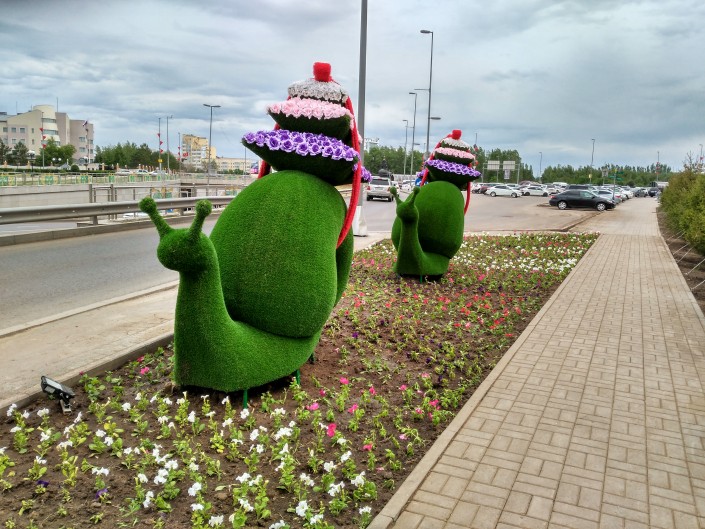 Жители и гости столицы уже успели заметить различные зеленые и цветочные композиции.