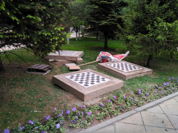 Сейчас здесь можно заметить лежащие на земле шахматные доски, которые вот-вот установят на специальные столы.