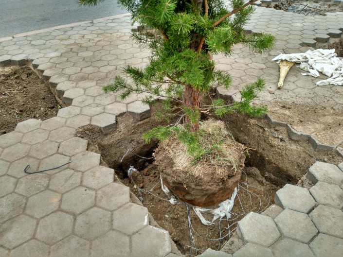 Новые деревья будто вырастают из брусчатки.
