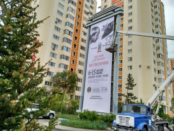 На главных улицах можно найти билборды, анонсирующие шоу-программы в рамках выставки EXPO.