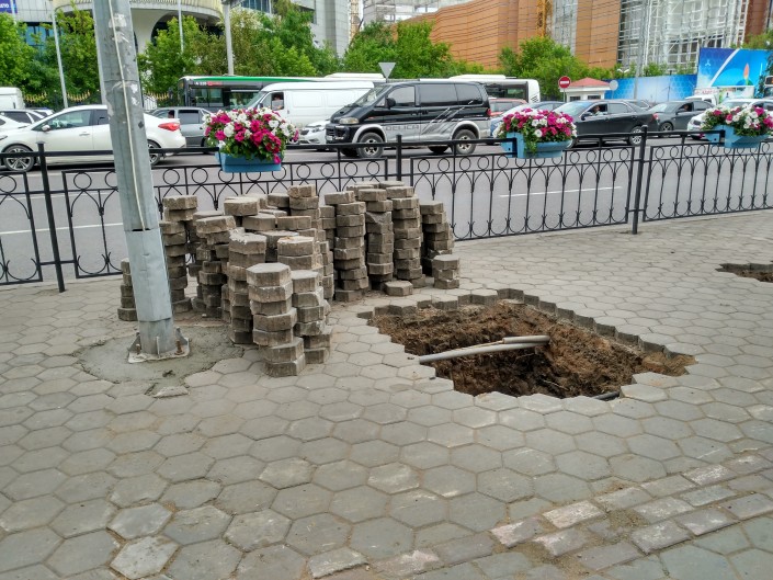 Прогуливаясь по старой части города, можно заметить, как приводятся в порядок тротуары.