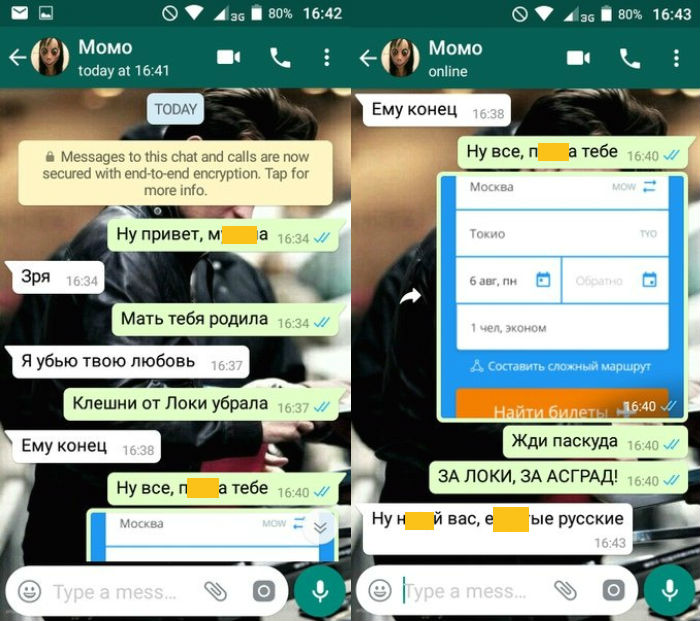 По самой популярной версии, если написать на один из номеров Момо, она сначала расскажет, что знает о пользователе все (в основном, где он живет), и начнет запугивать, обещая сделать с ним нечто страшное или присылая шок-контент (чаще всего фото расчлененных человеческих тел).