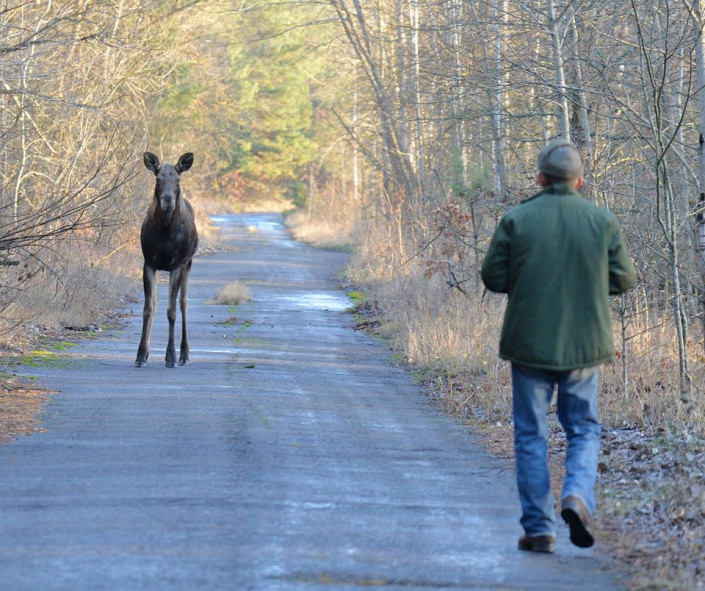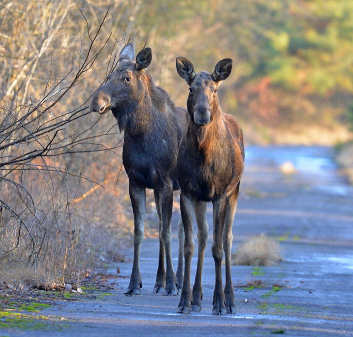 Также группе исследователей попалась пара лосей, которые совершенно не испугались людей.