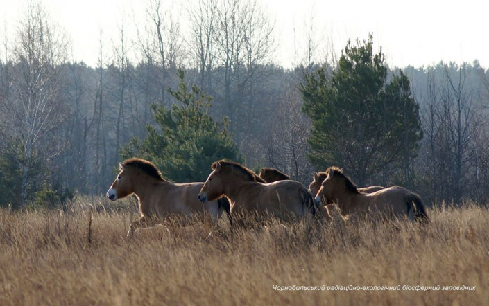 "Возможно, теплое зимнее солнце немного взбодрило жителей отчуждения, и они неторопливо прогуливаются лесными тропами Чернобыльского радиационно-экологического биосферного заповедника. Зона отчуждения – это дом лошадей Пржевальского, которые гуляют между деревьев, пощипывая остатки зеленой травы. А между тем по лесной дороге шагает пара лосей. Возможно, теплые зимние дни – это время, когда надо насладиться солнечными лучами. Фото: Сергей Домашевский и Станислав Гуменюк", - сказано в сообщении.
