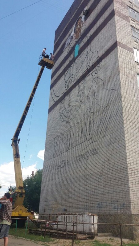 Хоккеиста с девятиэтажный дом рисуют стрит-арт-художники в Усть-Каменогорске. Портрет нападающего команды "Торпедо" Талгата Жайлауова сейчас создает творческая группа студентов из Алматы по заказу акимата Усть-Каменогорска, передает корреспондент Tengrinews.kz.