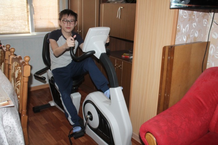 Каждое утро Нурболат занимается на велотренажере и выполняет комплекс специальных упражнений.