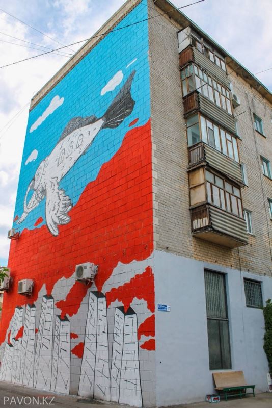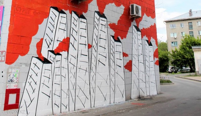 Стрит–арт художник Паша Кас разрисовал стену дома в Павлодаре, передает корреспондент Tengrinews.kz. Масштабное граффити, созданное с участием молодого художника из Темиртау, украсило торец дома в центре Павлодара.