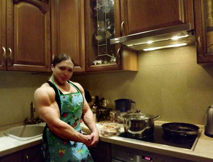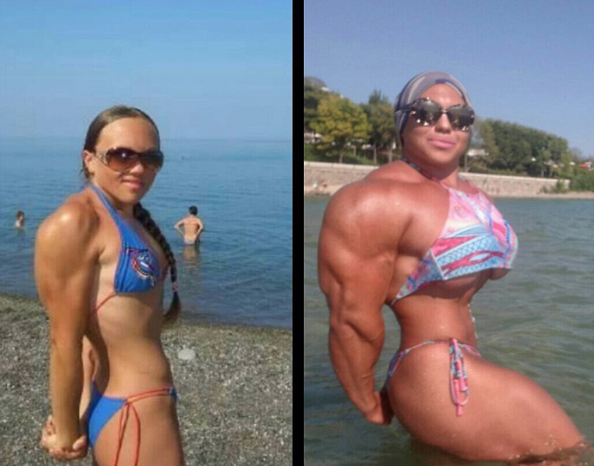 В отличие от синтолового качка, девушка утверждает, что запрещенные препараты не применяет. Ее некогда хрупкое тело превратилось в груду стальных мышц благодаря активным и тяжелым тренировкам.