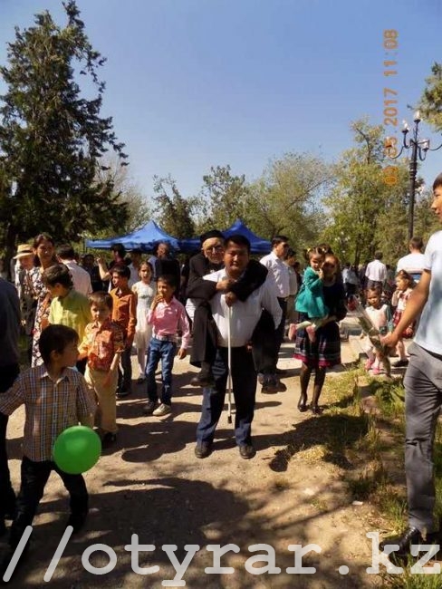 Житель Кентау на руках отнес своего деда в городской парк, где проходили праздничные мероприятия ко Дню Победы, сообщает Otyrar.kz.