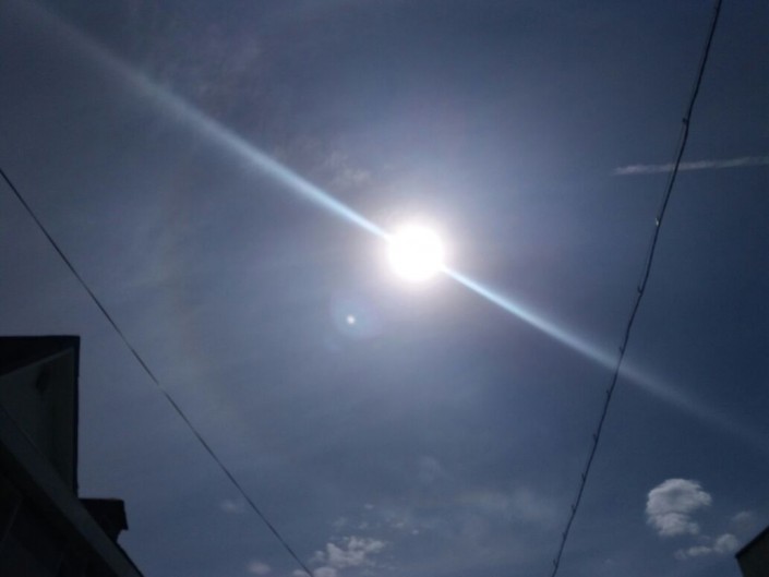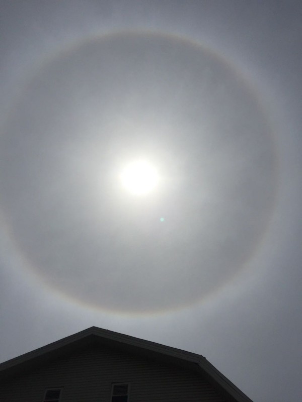 "Голову подняла посмотреть на небо, чтобы узнать погоду, и увидела такой ореол вокруг солнца, как круглая радуга. Я думала, не получится сфотографировать на телефон, но получилось", - рассказала женщина. По ее словам, снимок сделан в центре Караганды. Женщина утверждает, что ореол вокруг солнца наблюдается уже на протяжении нескольких часов. "Раньше похожее что-то было, но не так четко. И зимой бывало такое", - продолжила собеседница.